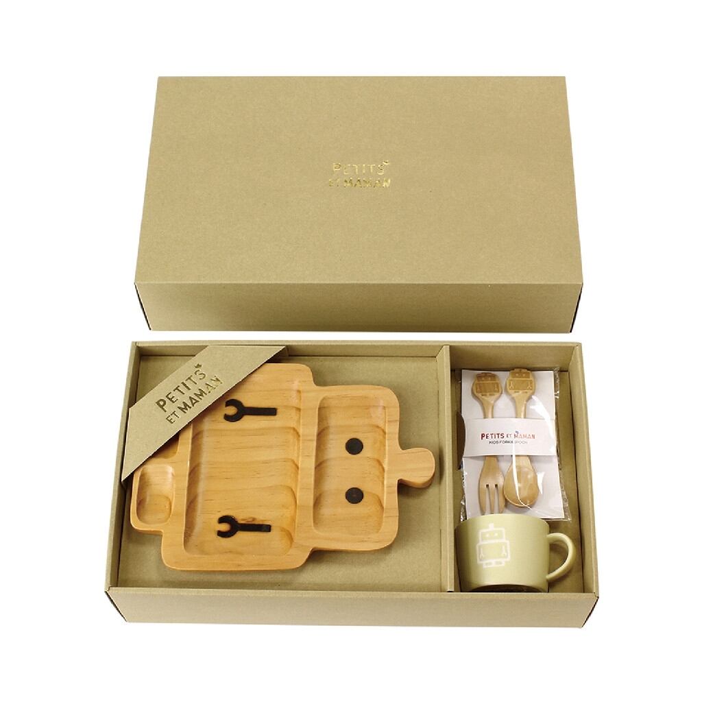 ■金色の箔押しされたギフトボックスに人気のプチママンの食器が入ったセットです。■軽くて割れにくいウッドトレイ、持ちやすさにこだわったフォーク&スプーン、安定感のある形の陶器マグカップの3点セット。■お揃いデザインで出産祝いや、お食い初め、毎日のお食事におすすめ。■心と体の成長をはぐくむ食器のセットです。